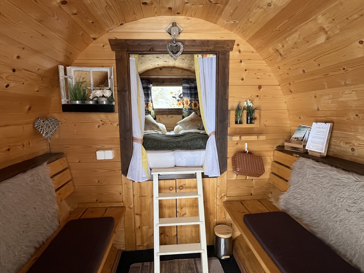 Die Schlaffässer® selbst sind mit einem großen Bett,